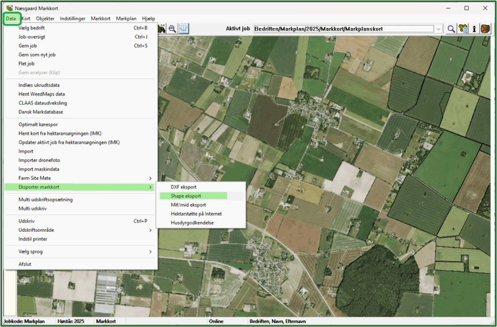 Vælg herefter Data > Eksporter markkort > Shape eksport