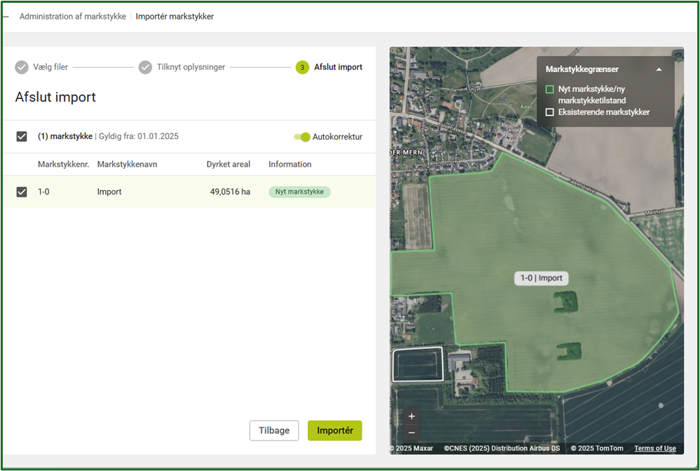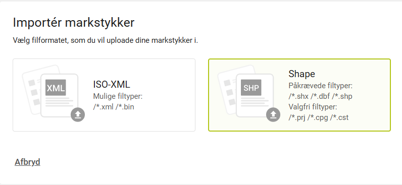 Gå til Management af din Bedrift og find Markstykker ligesom da du skulle importere markgrænser tidligere.