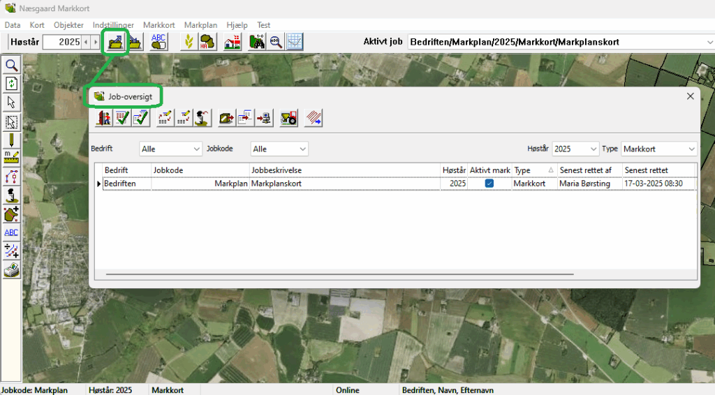 1. Find det job, der indeholder de markgrænser du vil udlæse under job-listen