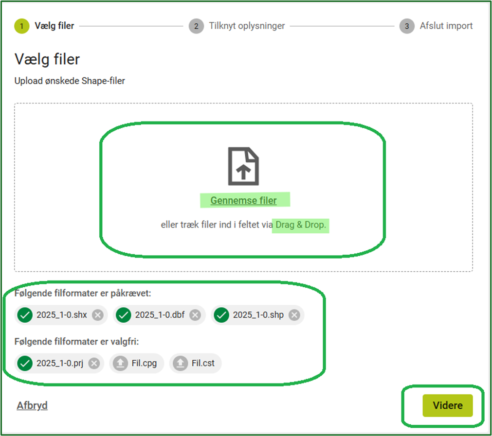OBS!!!! Der kan kun importeres én filtype ad gangen
