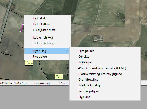 Når du fremover klikker på arealet, kan du se markkode areal og markens omkreds nederst i skærmbilledets bund.