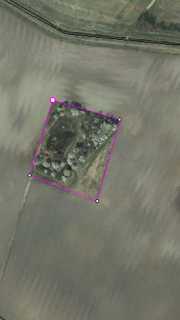 Indtegn nu marken ved at klikke med musen rundt om marken. For hver gang du klikker afsættes et punkt. Hvis du har zoomet så langt ind, at hele marken ikke kan være på skærmen må du flytte kortet og/eller zoome.